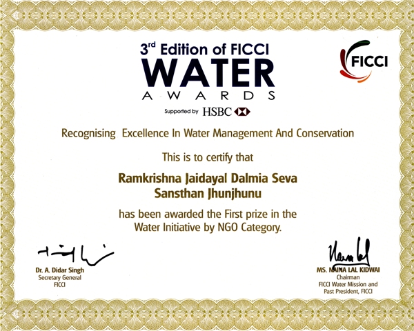 Since water is a scarce resource in the region RJDSS major interventions were in the water sector, with the broad objective of ensuring safe and sustainable supply of drinking water by adopting Integrated Water Resource Management Approach. Water conservation and promotion of total sanitation in the villages has been successfully achieved in 15 villages and that was acclaimed nationally by awards (at different level by different organisations).